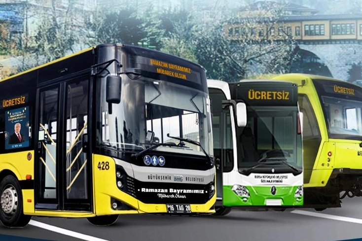 Bursa Büyükşehir Belediyesi, Ramazan Bayramı’nda vatandaşların rahat ve huzurlu bir şekilde ziyaretlerini gerçekleştirebilmeleri amacıyla 20-21-22 Mart tarihlerinde kent içi ayakta yolcu taşıyan hatlardaki toplu taşıma araçlarının, Bursaray ve tramvay hatlarının ücretsiz olacağını duyurdu.