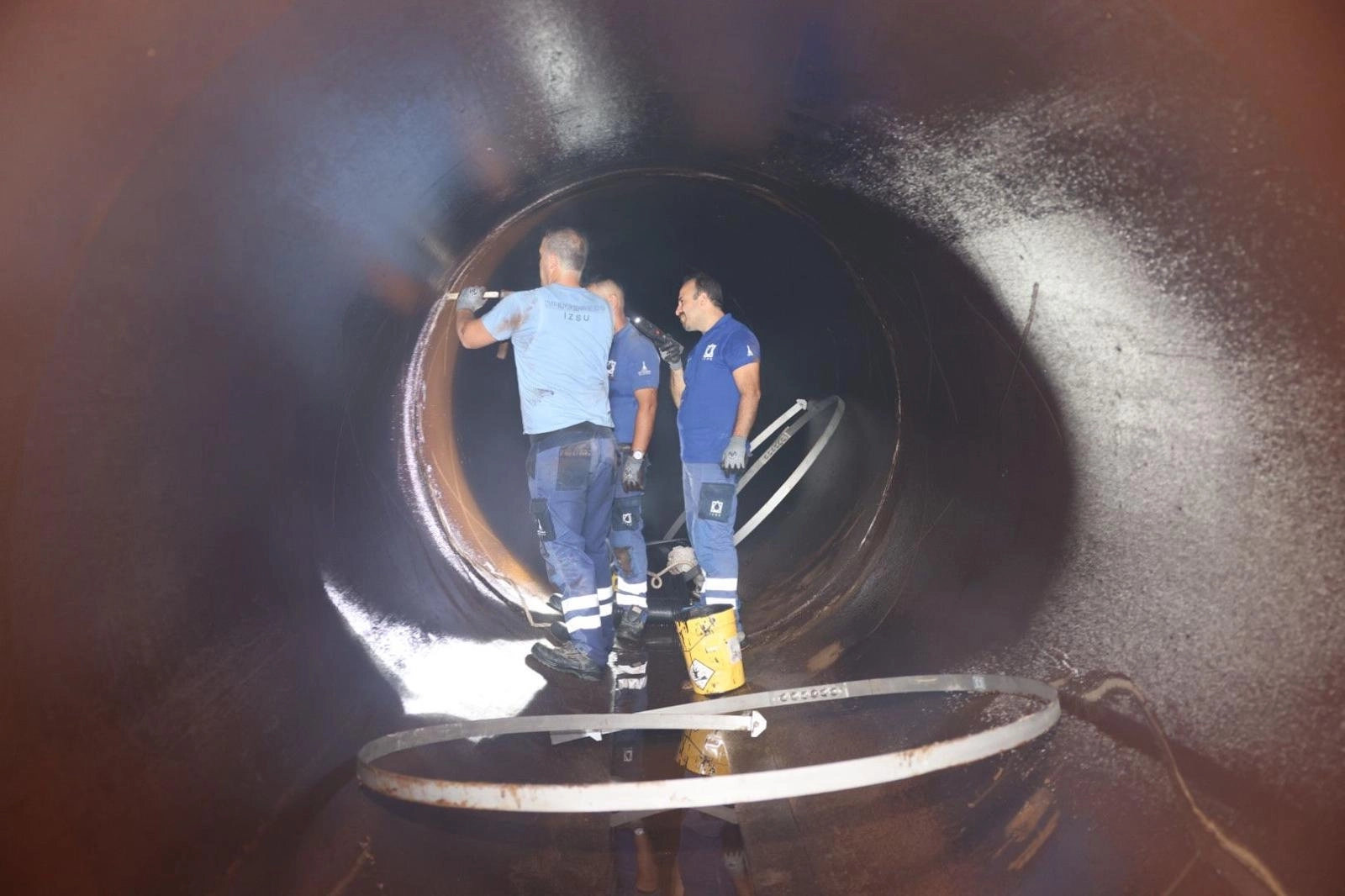 Güzelhisar (Petkim) Barajı ile Sarıkız ve Göksu Kuyuları’ndan şehrimize su taşıyan 2,2 metre çapındaki ana su isale hattında dün gece büyük bir patlak meydana geldiğinin altı çizilen açıklamada, "Çiğli 9 Eylül Mahallesi’nde yerin 3 metre altında gerçekleşen bu patlağa, ekiplerimiz kısa sürede müdahale etmiştir. Öncelikle ana isale hattındaki su boşaltılma işlemi başlatılmış ve eş zamanlı olarak vatandaşlarımıza SMS ve sosyal medya hesapları aracılığıyla bilgilendirme yapılmıştır. Su boşaltma işleminin ardından ekiplerimiz, en yakın baca noktasından girerek, yer altından 470 metre ilerleyerek arızaya müdahale etmiştir. Arızalanan hattaki boru çapının büyüklüğü ve teknik özelliklerine uygun olarak boru içinden ve dışından başlatılan onarım işlemleri gece boyunca devam etmiş ve çalışma tamamlanmıştır. 42 km uzunluğunda ve 2,2 metre çapındaki isale hattına verilecek suyun uygun seviyeye gelmesinin ardından, bu gece saat 22.00’de vatandaşlarımıza suyu ulaştırmayı hedeflemekteyiz.” ifadeleri yer aldı.