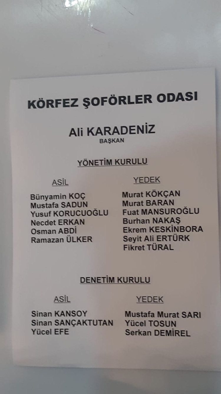 KÖRFEZ ŞOFÖRLER ODASI’NDA GÜVEN TAZELENDİ