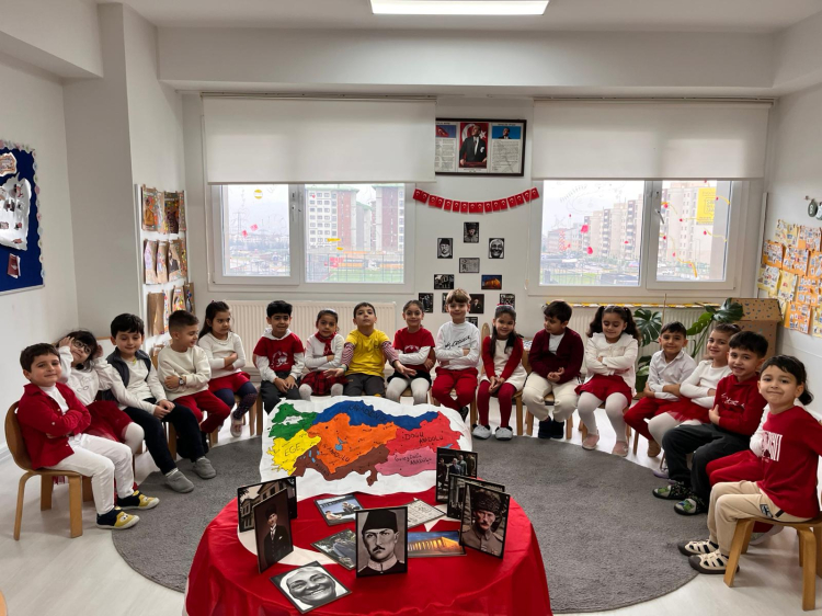 Duru Okulları anaokulu ve ilkokul öğrencileri, bayrak temalı şiirler, resimler ve görsel çalışmalarla vatanlarına duydukları sevgiyi gururla ifade etti. Minik yüreklerin büyük anlamlar yüklediği etkinlikte, öğrencilerin sergilediği çalışmalar okul genelinde sergilenerek öğrenme ortamlarına renk kattı.