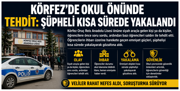 Edinilen bilgilere göre, olay dün Körfez Oruç Reis Anadolu Lisesi önünde meydana geldi. Siyah bir araçla okul önüne gelen kişi ya da kişilerin, önce öğrencilerle konuşmaya çalıştığı, ardından ise bazı öğrencileri sözlü olarak tehdit ettiği öne sürüldü. Durumdan rahatsız olan öğrenciler, olayı vakit kaybetmeden okul idaresine bildirdi.